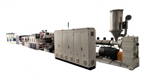 單螺桿擠出機--三輥定型機--波浪式定型臺--波浪式雙牽引機 --切割機 --上下可調輸送臺