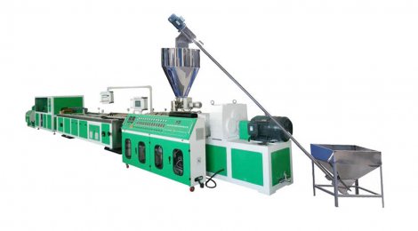 錐形雙螺桿擠出機--定型臺--牽引切割機--翻轉臺