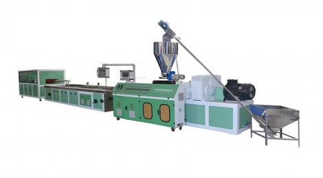 錐形雙螺桿擠出機--定型臺--牽引切割機-翻轉臺